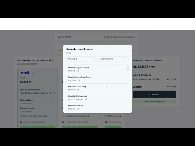 Compare as opções das marcas de saúde mais conhecidas e visualize exatamente quais hospitais e laboratórios você terá acesso. Tudo transparente e rápido.